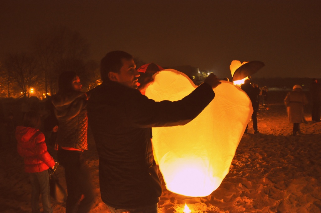 Po koncercie pieśni patriotycznych i występach dzieci z sopockich szkół na Skwerze Kuracyjnym, sopocianie przeszli na plażę w okolice Zatoki Sztuki, stąd wysłali do nieba białe i czerwone lampiony z życzeniami dla Polski. Nie przeszkodził padający deszcz. Lekko mokre lampiony unosiły się w górę i leciały w stronę zatoki.