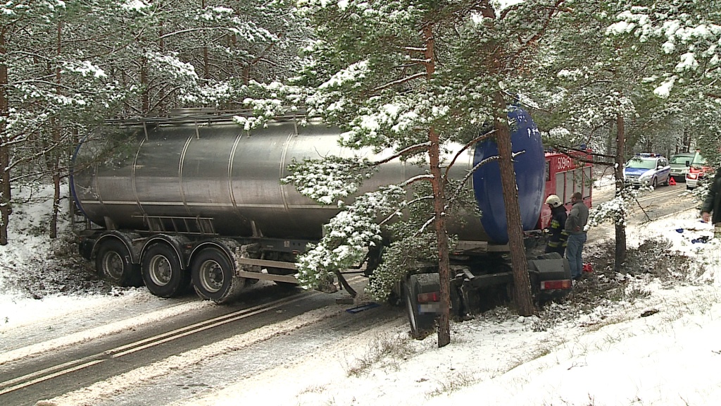 Przez około godzinę droga była zablokowana. Obecnie ruch odbywa się bez zakłóceń. Na drogach panują trudne warunki. Zalegający śnieg powoduje, że jest bardzo ślisko. Policja apeluje o ostrożną jazdę.
