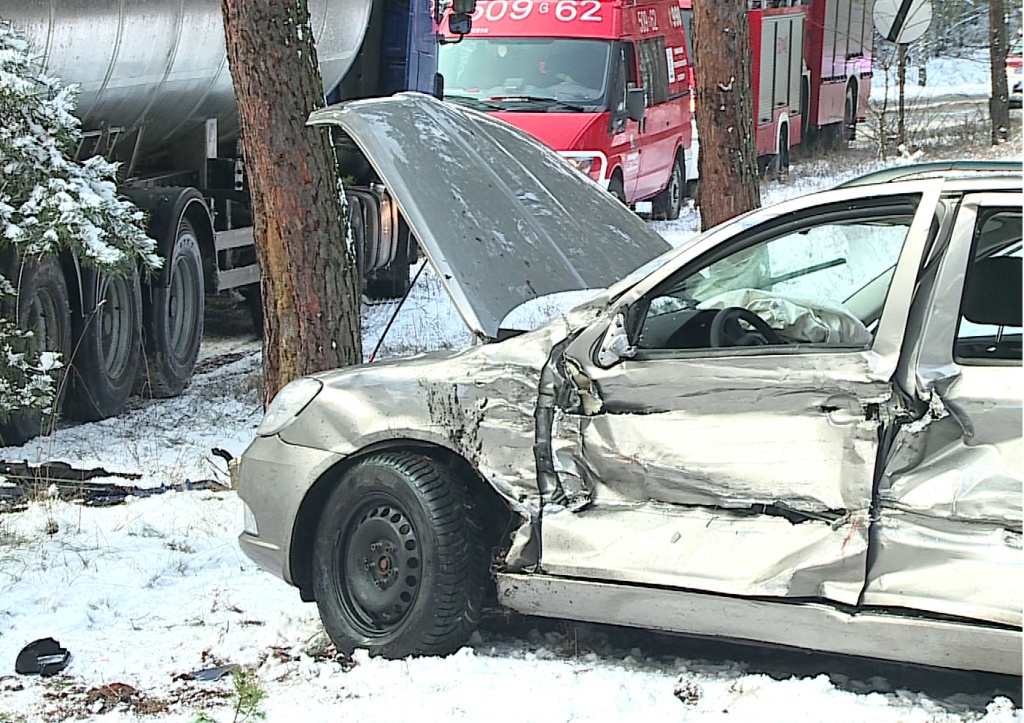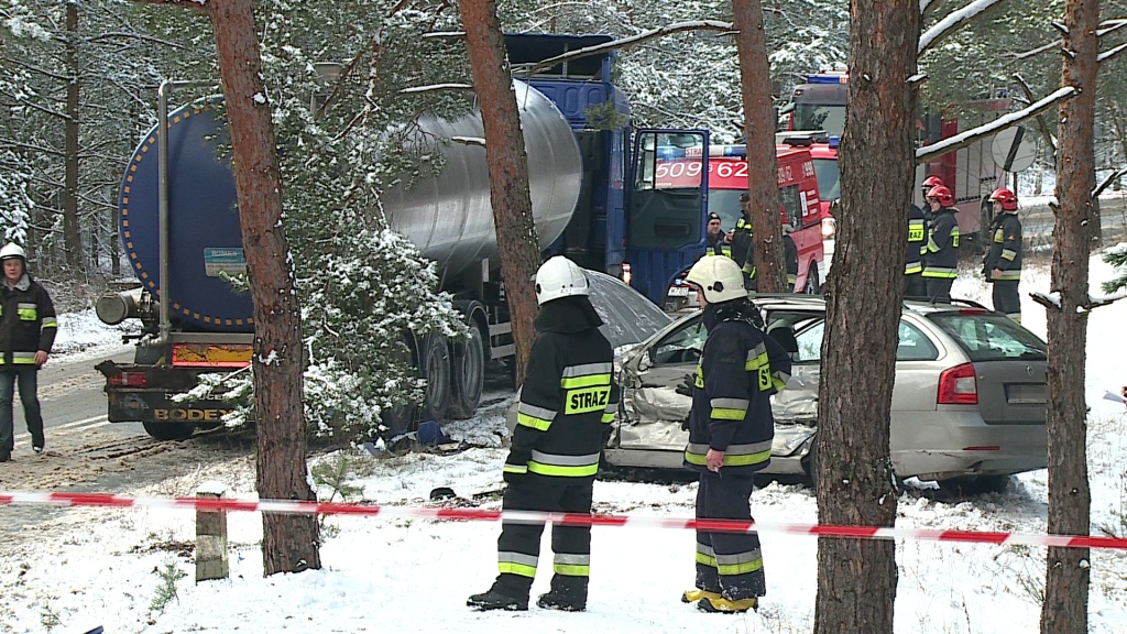 Do zdarzenia doszło przed godziną 12.00. Na łuku drogi pusta cysterna wpadła w poślizg i uderzyła w nadjeżdżający z naprzeciwka samochód osobowy marki Skoda. Autem podróżowała czteroosobowa rodzina ze Śląska.