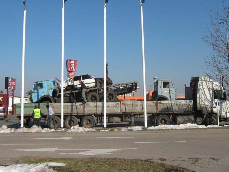 Wczoraj ok. godz. 13 w miejscowości Rumia inspektorzy z Pomorskiego Wojewódzkiego Inspektoratu Transportu Drogowego zatrzymali do kontroli ciągnik siodłowy z naczepą na której były przewożone... 3 pojazdy – 2 kamazy, z czego na jednym z kamazów znajdował się polonez.