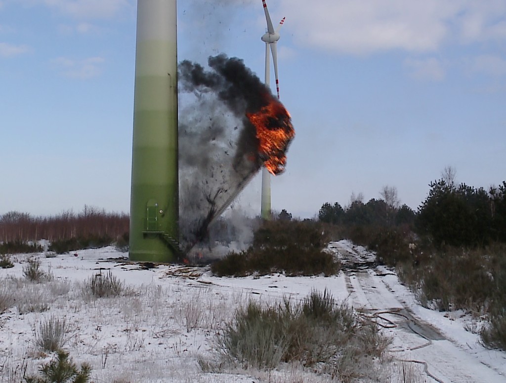 Dziś rano, około godziny 6:00, zapalił się jeden z wiatraków znajdujący się na farmie wiatrowej w Lisewie, koło Gniewina. Na miejscu pracowały 3 zastępy Straży Pożarnej. Nie wiadomo co było przyczyną wybuchu pożaru.