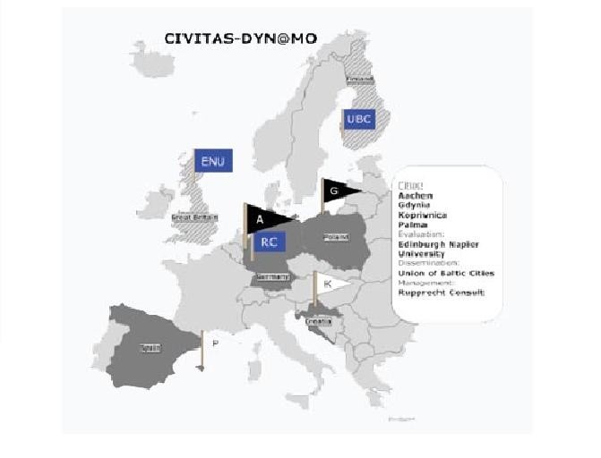 Projekt realizowany jest w czterech dynamicznie rozwijających się europejskich miastach: Akwizgranie (Niemcy), Gdyni, Koprivnicy (Chorwacja), Palma de Mallorca (Hiszpania). Uczestniczy w nim 24 partnerów lokalnych z wyżej wymienionych miast, które w ramach projektu tworzą swoje konsorcjum. W skład gdyńskiego wchodzą: Gmina Gdynia (Zarząd Dróg i Zieleni), Politechnika Gdańska, Uniwersytet Gdański oraz Przedsiębiorstwo Komunikacji Trolejbusowej w Gdyni.
