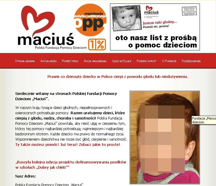 Polska Fundacja Pomocy Dzieciom „Maciuś” jeszcze pod koniec lutego alarmowała, że 800 tys. dzieci z klas 1-3 w ciągu dnia nie je obiadu lub innego posiłku. Trzy tygodnie później w „Rzeczpospolitej” ukazał się artykuł mówiący o tym, że fundacja przekazuje na głodne dzieci tylko znikomą część funduszy jakimi dysponuje. Reszta miała być przekazywana na konta szwajcarskiej spółki.