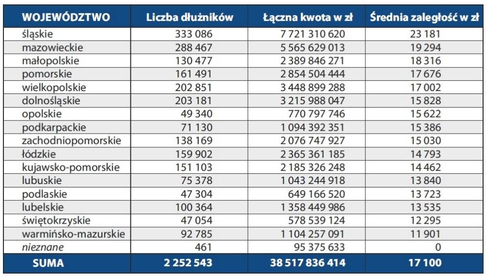 W województwie pomorskim zadłużonych jest aż 202 851 mieszkańców. Ich zsumowana kwota zobowiązań wynosi 2,85 miliarda złotych. Średnia kwota zadłużenia na jedną osobę wynosi 17 tys. złotych (Dane Biuro Informacji Gospodarczej, InfoMonitor, "InfoDług. Ogólnopolski raport o zaległym zadłużeniu i klientach podwyższonego ryzyka". Luty 2013).