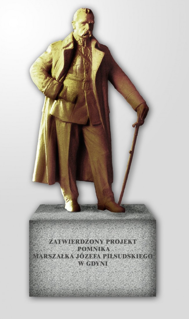 O budowę pomnika marszałka Piłsudskiego, od 1928 r. Honorowego Obywatela Gdyni, zabiegał „Związek Piłsudczyków Rzeczypospolitej Polskiej Towarzystwo Pamięci Józefa Piłsudskiego Oddział Pomorski w Gdyni". Starania rozpoczęły się w 2009 r. Dzięki determinacji członków udało się zebrać na ten cel ponad 130 tysięcy złotych. Autorem projektu i wykonawcą pomnika jest artysta rzeźbiarz Stanisław Szwechowicz, autor m.in. pomnika Antoniego Abrahama i popiersia Eugeniusza Kwiatkowskiego. Pomnik stanie przed Urzędem Miasta Gdyni 10 listopada 2013 r.