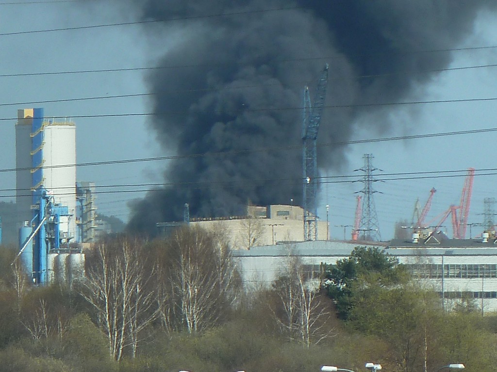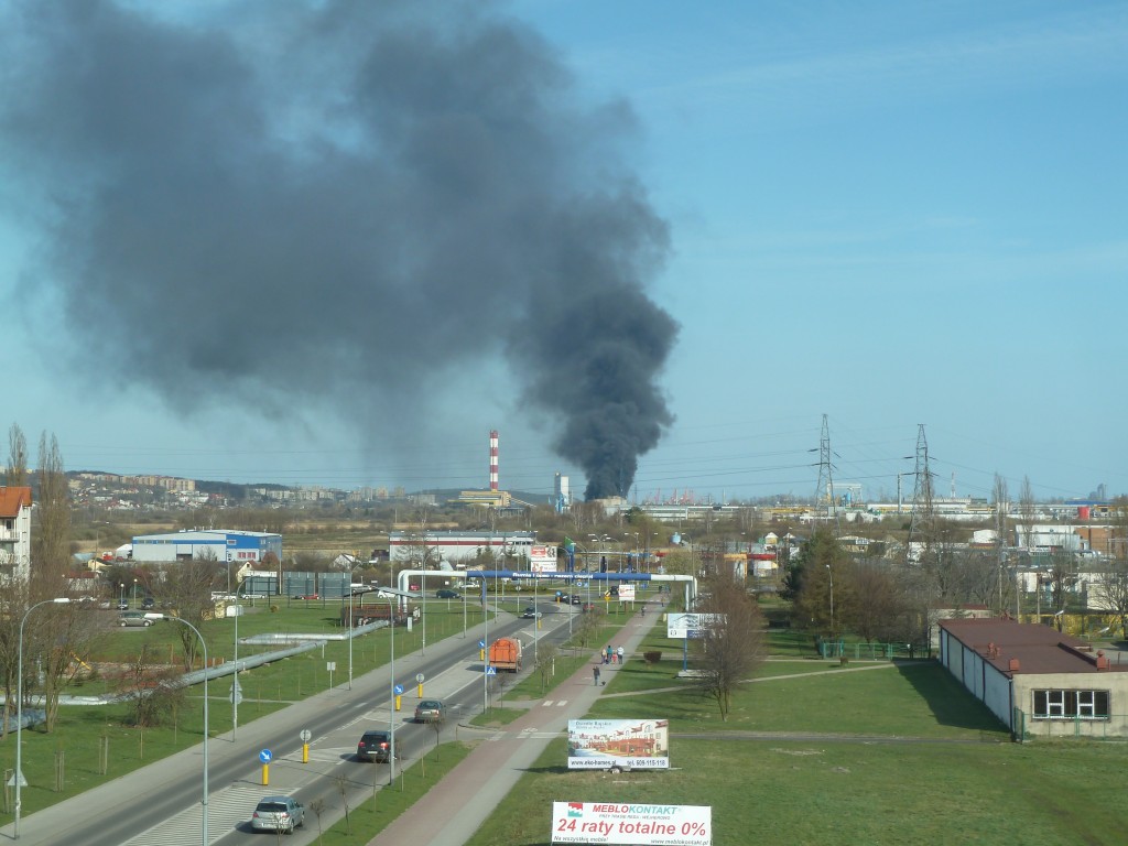 Kłęby czarnego dymu widać było już w Rumi. Akcja gaśnicza może potrwać nawet kilka godzin. Ogień zajął dach magazynu, w którym znajdowały się farby i rozpuszczalniki.