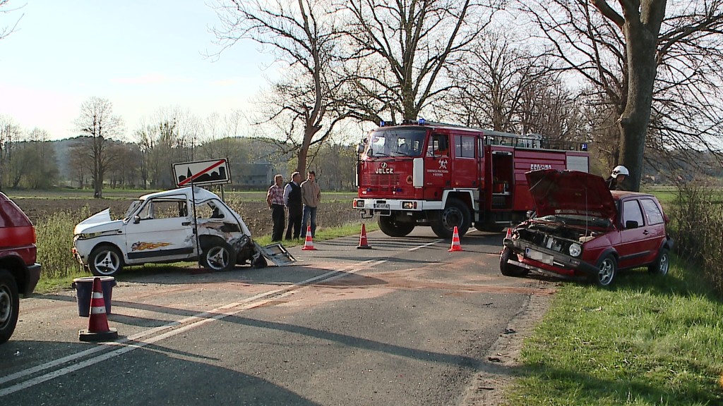 Wczoraj około godziny 17 doszło do kolizji drogowej na drodze Zamostne – Rybno, brały w nim udział dwa samochody osobowe Fiat 126p oraz Volkswagen Golf. najprawdopodobniej przyczyną zdarzenia był nieprawidłowy manewr wyprzedzania.