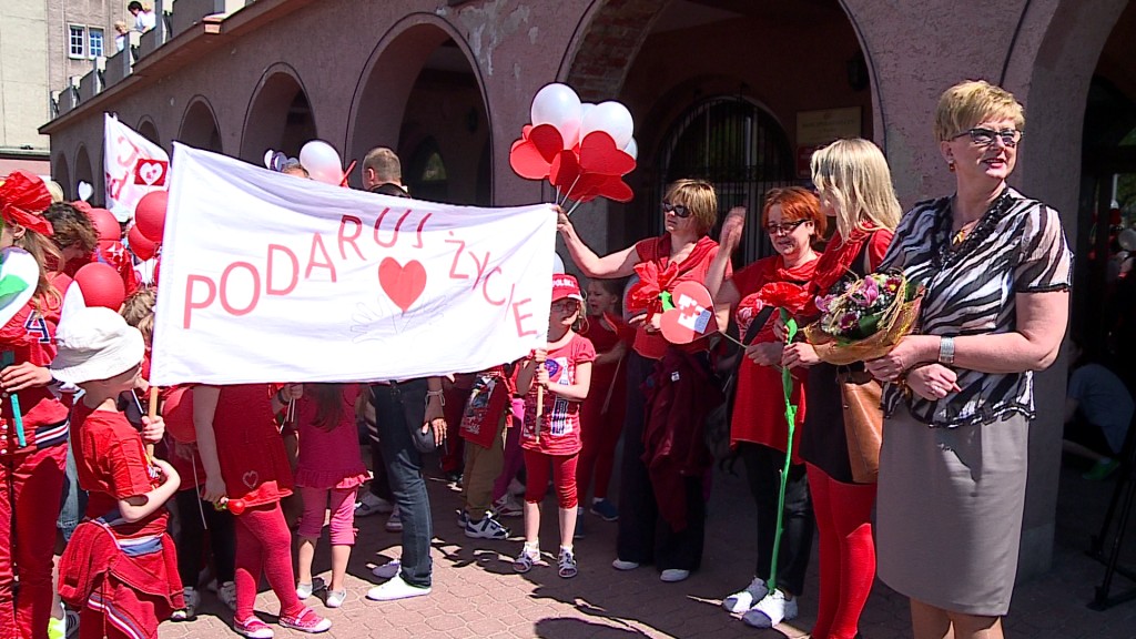 O 10.00 kolorowy korowód przemaszerował pod Urząd Miasta, by wyrazić swoje poparcie i zachęcić do rejestracji w bazie. Jedną z osób, którą namawiano do udziału w Dniu Dawcy Szpiku była burmistrz Władysławowa. Grażyna Cern otrzymała z rąk dzieci symboliczny klucz do bram miasta.
