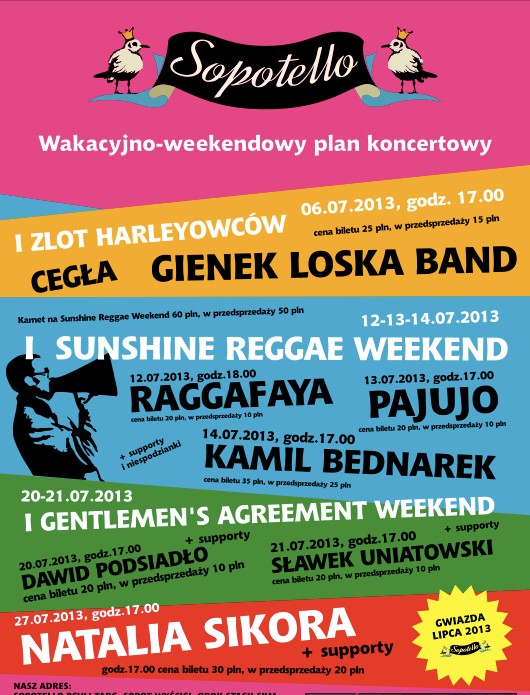 W sobotę na Sopockiej Scenie Sopotello pojawi się Gienek Loska Band. Tego dnia przybędą również harleyowcy, jedyna taka okazja dla miłośników pięknych maszyn, którzy chcą zrobić sobie zdjęcie na motocyklach. Początek tego wydarzenia rozpocznie się punktualnie o godzinie 10:00.