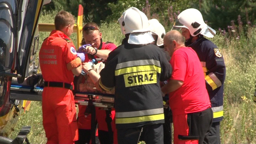 Poszkodowanego zabrał śmigłowiec Lotniczego Pogotowia Ratunkowego. Mężczyzna był przytomny. Przetransportowano go do szpitala w Wejherowie.