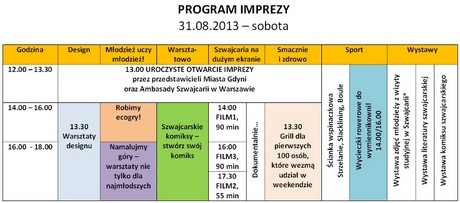 W programie dwudniowej imprezy jest też grill dla uczestników, warsztaty ze zdrowego żywienia oraz gra miejska "Ser Szwajcarski czyli Szukaj Dziury w Całym" - udział z niej pomoże zapoznać się z kulturą kraju partnerskiego.