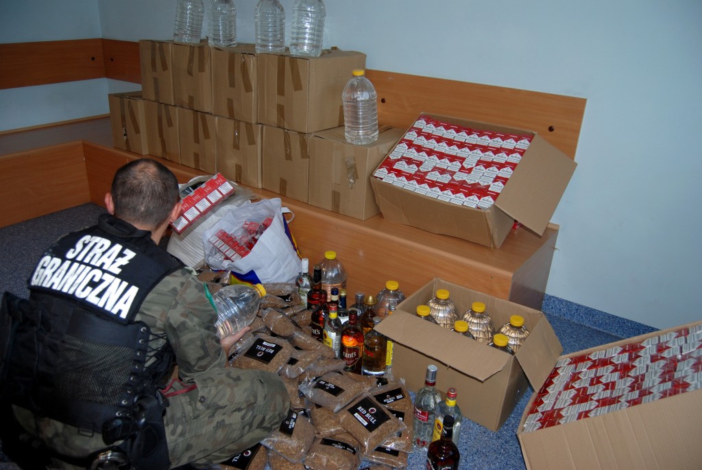 Strażnicy graniczni skontrolowali w Gdyni samochód kierowany przez 60-letniego mieszkańca Lublina, z którym podróżował 43-letni Polak. W bagażniku i na tylnym siedzeniu znajdowało się w kartonach 10 tysięcy papierosów bez polskich znaków skarbowych, 330 litrów spirytusu w pięciolitrowych pojemnikach oraz ponad 60 foliowych opakowań do tytoniu.
