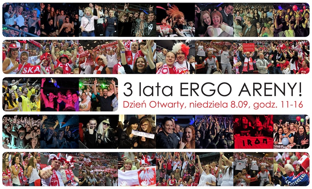 Hala na granicy Gdańska i Sopotu ma już trzy lata. Z tej wyjątkowej okazji Prezes ERGO ARENY, Prezydenci Miast: Gdańska i Sopotu zapraszają na Drzwi Otwarte ERGO ARENY. Uroczystość podsumowująca obecność hali na eventowej mapie Polski, rozpocznie się w niedzielę, 8 września o godzinie 11.00 (wejście główne A1).