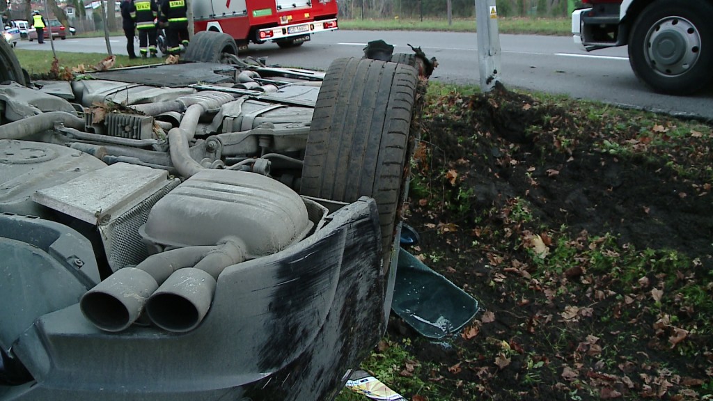 Strażacy zabezpieczyli pojazd, żeby nie doszło do niekontrolowanego pożaru. Czynności na miejscu zdarzenia prowadzi Policja.