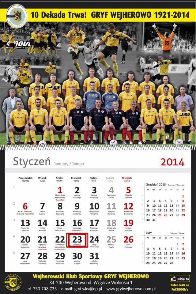 Oficjalne kalendarze Gryfa Wejherowo na 2014 rok już są w sprzedaży. Mimo, że wcześniej informowaliśmy, że będą gotowe na Mikołajki. Drukarni Ewa Druk przygotowała je nieco wcześniej.