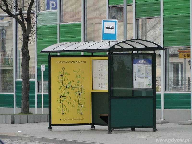 Metamorfozie poddano pięć przystanków w tej najrozleglejszej dzielnicy Gdyni. Każdy z nich zyskał nowy design, kolorowy bok, tablicę z informacjami o dzielnicy i ławeczkę dla zmęczonych podróżnych.