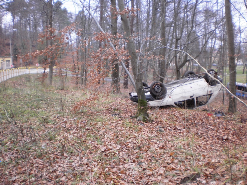 Jak się okazało kierowca po przejechaniu około 40 metrów uderzył w kamień po czym pojazd dachował. W wyniku zdarzenia nikt nie ucierpiał.