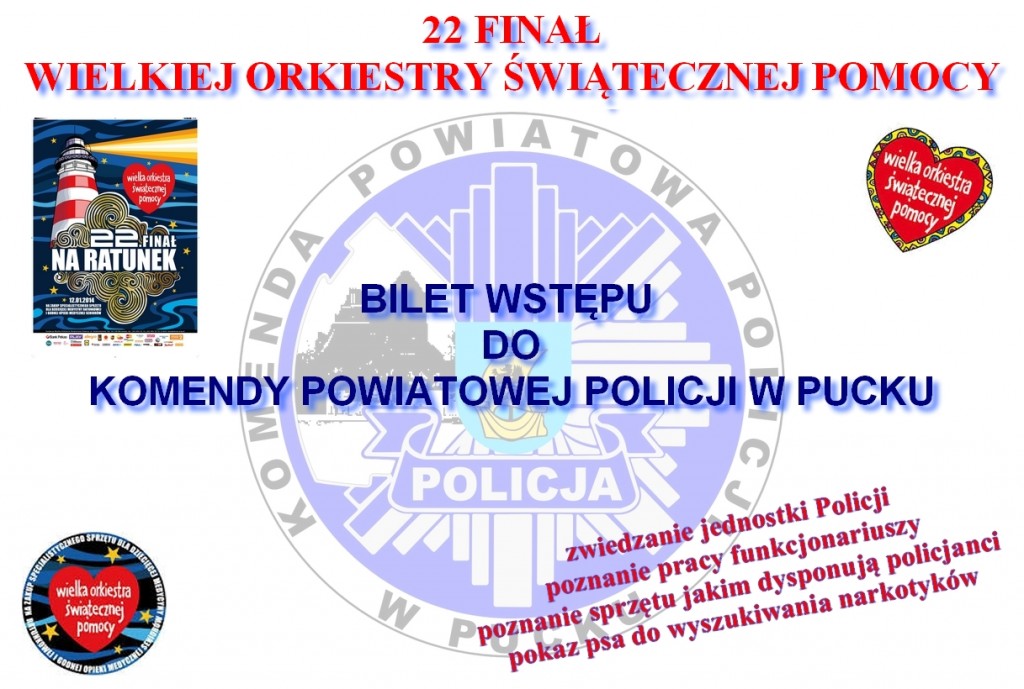 W niedzielę rozpoczyna się kolejna edycja Wielkiej Orkiestry Świątecznej Pomocy. To już 22 finał, w ramach którego na terenie naszego powiatu wolontariusze będą zbierać pieniądze na dzieci i seniorów. W tegoroczną edycję po raz kolejny włączają się puccy policjanci. Funkcjonariusze w nieco większym niż zazwyczaj składzie będą dbali o bezpieczeństwo wolontariuszy. Spotkanie z ich opiekunami zaplanowano w niedzielę rano, wówczas policjanci omówią podstawowe zasady bezpiecznego kwestowania i unikania zagrożeń.