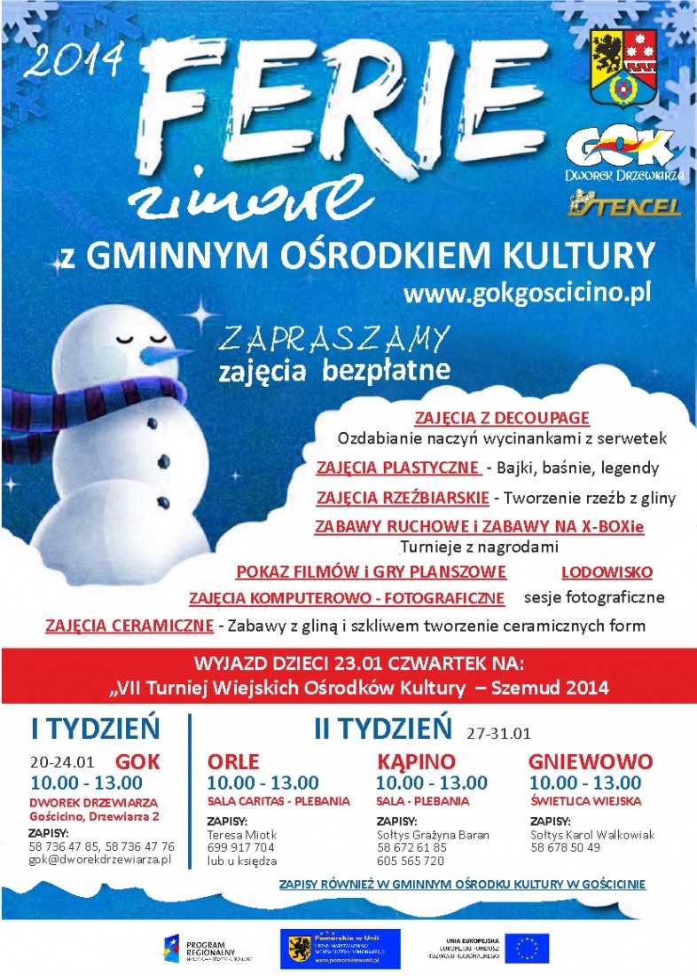 20 stycznia 2014 roku w województwie pomorskim rozpoczęły się ferie zimowe, które potrwają do 2 lutego 2014 roku. Sprawdź co na ten czas przygotowały miasta, gminy, centra kultury, szkoły i inne organizacje!