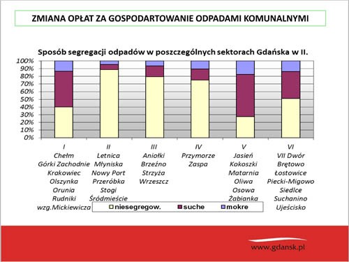 Z danych zgromadzonych przez ZDiZ wynika, że segregacja najlepiej przebiega w tych rejonach Gdańska, w których wprowadzono ją jeszcze przed wejściem w życie ustawy.