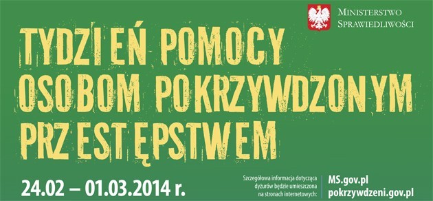 Przed nami kolejny „Tydzień Pomocy Osobom Pokrzywdzonym Przestępstwem”. W tym roku każdy zainteresowany będzie mógł zgłosić się o poradę w dniach 24 lutego – 1 marca 2014r.