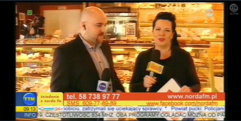 Dziś Śniadanie z Norda FM nadaje NA ŻYWO z Cukierni Wenta. Od 9:00 do 11:15 program będzie można śledzić w Twojej Telewizji Morskiej oraz na portalu Nadmorski24.pl i na stronie telewizjattm.pl Warto oglądać, bo wśród uważnych widzów rozlosowane zostaną słodkie nagrody!