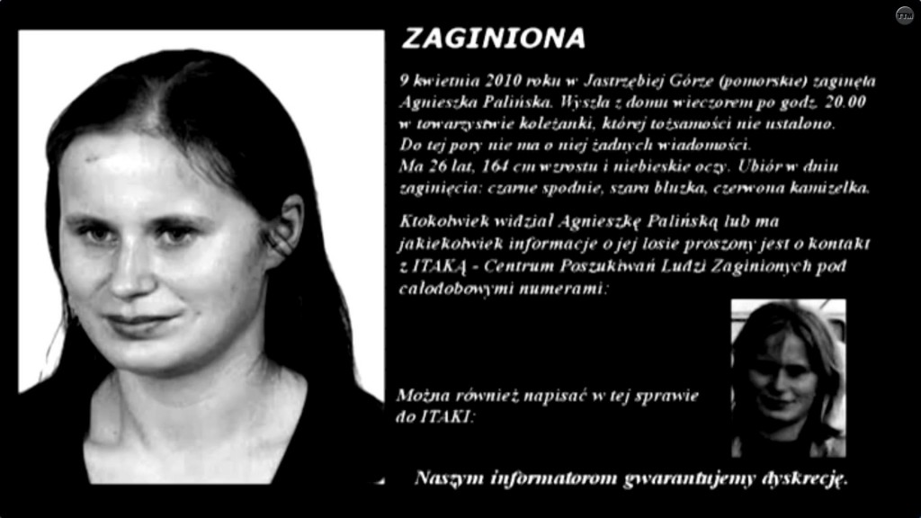 Jak ustalono, w dniu 19 kwietnia 2010 roku konkubent Agnieszki P. zgłosił jej zaginięcie. Ostatni raz widział ją 9 kwietnia 2010 roku. Biegły stwierdził, że zgon kobiety nastąpił w nocy z 9 na 10 kwietnia 2010 roku.