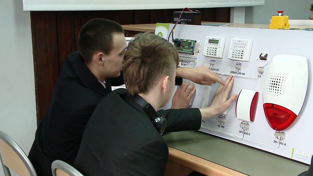 - Znajdują się tutaj typowe stanowiska systemów alarmowych, centrali alarmowych, gdzie uczniowie uczą się montażu jak i programowania. Każda stacja jest tutaj praktycznie zupełnie inna, oprogramowania to cały wachlarz możliwości, jak również systemy kontroli dostępu - wyjaśnia Paweł Przybylski, nauczyciel przedmiotów zawodowych elektrycznych i elektronicznych.