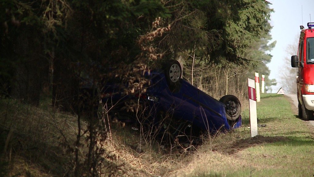 - Zostaliśmy zadysponowani do wypadku, dokładnie dachowania pojazdu. Na miejscu zastaliśmy samochód w rowie po dachowaniu, drugi samochód po przeciwnej stronie jezdni wjechał tylko do rowu. Na miejscu znajdowała się karetka pogotowia, która udzielała pomocy osobie z Seata, czyli z tego pojazdu, który dachował - wyjaśnia wyjaśnia młodszy kapitan Piotr Kiński.