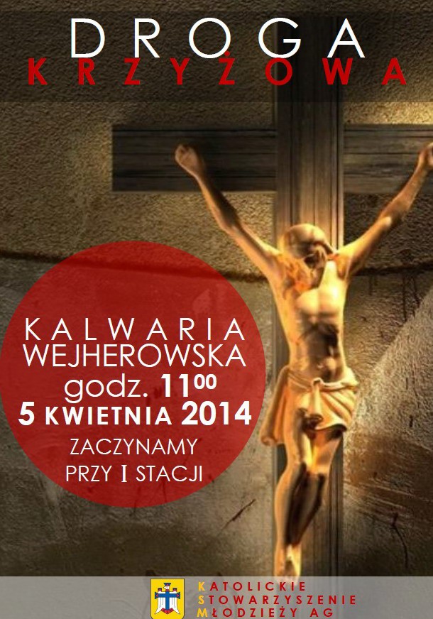 Katolickie Stowarzyszenie Młodzieży Archidiecezji Gdańskiej zaprasza wszystkich wiernych, a zwłaszcza młodzież wraz z księżmi i katechetami do udziału w drodze krzyżowej na Kalwarii Wejherowskiej. Odbędzie się ona w sobotę, 5 kwietnia 2014 r. o godz. 11.00. Spotkanie przy pierwszej stacji.