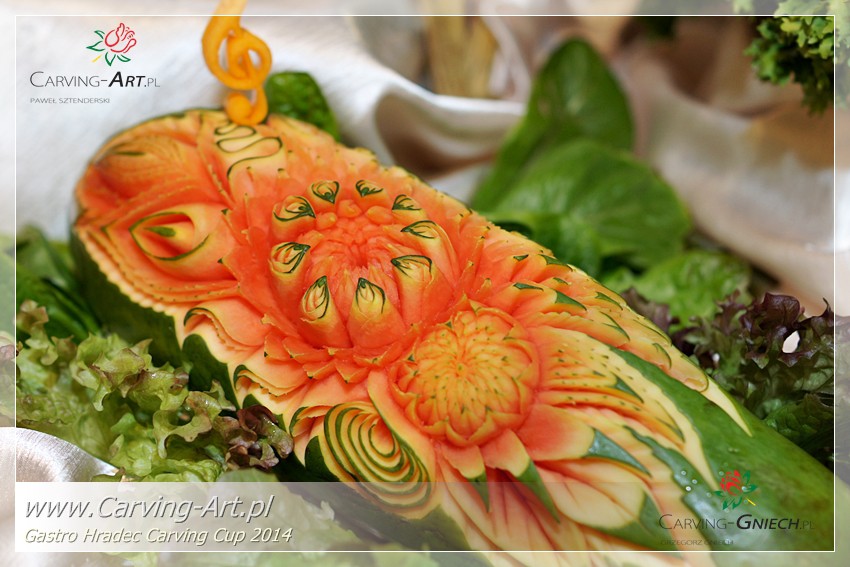 Po ekspozycji prac zespołowych wszyscy udali się na śniadanie a następnie zaczęły się przygotowania do konkurencji Live Carving. W tym roku tematem pracy była Kompozycja Kwiatowa. Zawodnicy aby myśleć o najwyższych miejscach musieli zrezygnować ze sztucznych, niejadalnych elementów jak szklane naczynia, wazony, kamienie, piasek itp.