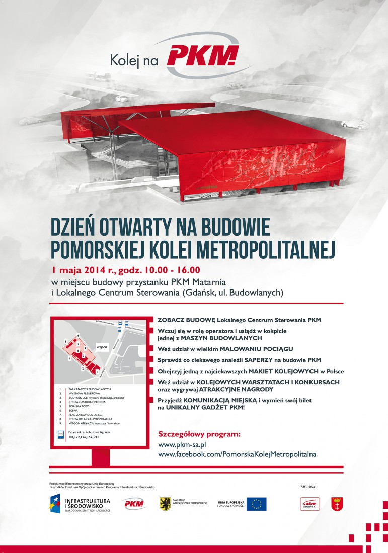 Pomorska Kolej Metropolitalna zaprasza na imprezę pod hasłem: „Kolej na PKM” czyli Dzień Otwarty na naszej budowie. Największa inwestycja kolejowa Samorządu Województwa Pomorskiego po raz pierwszy tak szeroko otwiera swoje drzwi dla mieszkańców regionu. Każdy, kto 1 maja 2014 r. w godz. 10.00-16.00 pojawi się w miejscu budowy przystanku PKM Matarnia i Lokalnego Centrum Sterowania (przy ul. Budowlanych w Gdańsku) będzie miał okazję nie tylko zobaczyć od środka, jak buduje się nową linię kolejową w Trójmieście, ale również wyjątkowo ciekawie rozpocząć długi majowy weekend.
