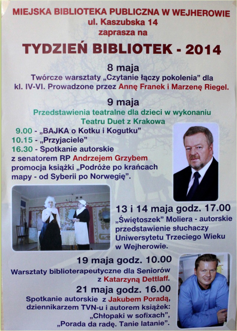 Rozpoczął się Tydzień Bibliotek 2014. Do akcji przyłączyła się Miejska Biblioteka Publiczna w Wejherowie, która zaprasza do udziału w licznych imprezach na które wstęp jest darmowy.