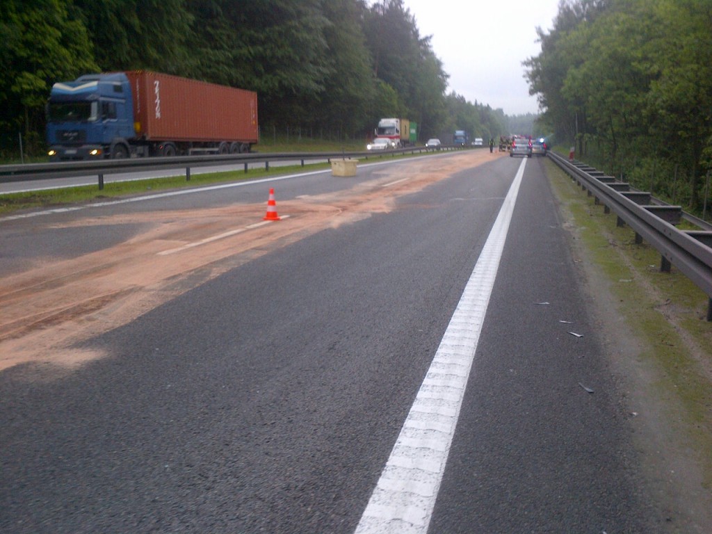 Około godziny 17:00 za wjazdem na obwodnicę z ulicy Spacerowej ciężarówka przewożąca olej uderzyła w barierki. Akcja wypompowywania paliwa oraz usuwanie samochodu z drogi trwało około dwie godziny, wówczas utworzył się 4-kilometrowy korek.