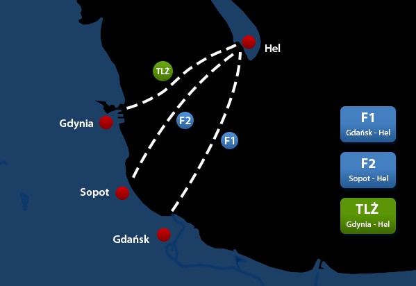 Tramwaje wodne: Gdańsk - Hel, Hel - Gdańsk, Sopot - Hel, Hel - Sopot kursują w dniach: 1.05 do 04.05, 10.05 do 11.05, 17.05 do 18.05, 24.05 do 25.05, 31.05 do 01.06, 07.06 do 08.06, 14.06 do 15.06, 19.06 do 22.06, 28.06 do 31.08 codziennie