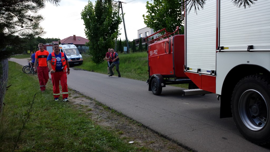 W Gniewinie przy ulicy Słonecznej trwa wspólna akcja policji i straży pożarnej. W stawie kąpał się mężczyzna. Służby ratownicze próbują go odnaleźć.