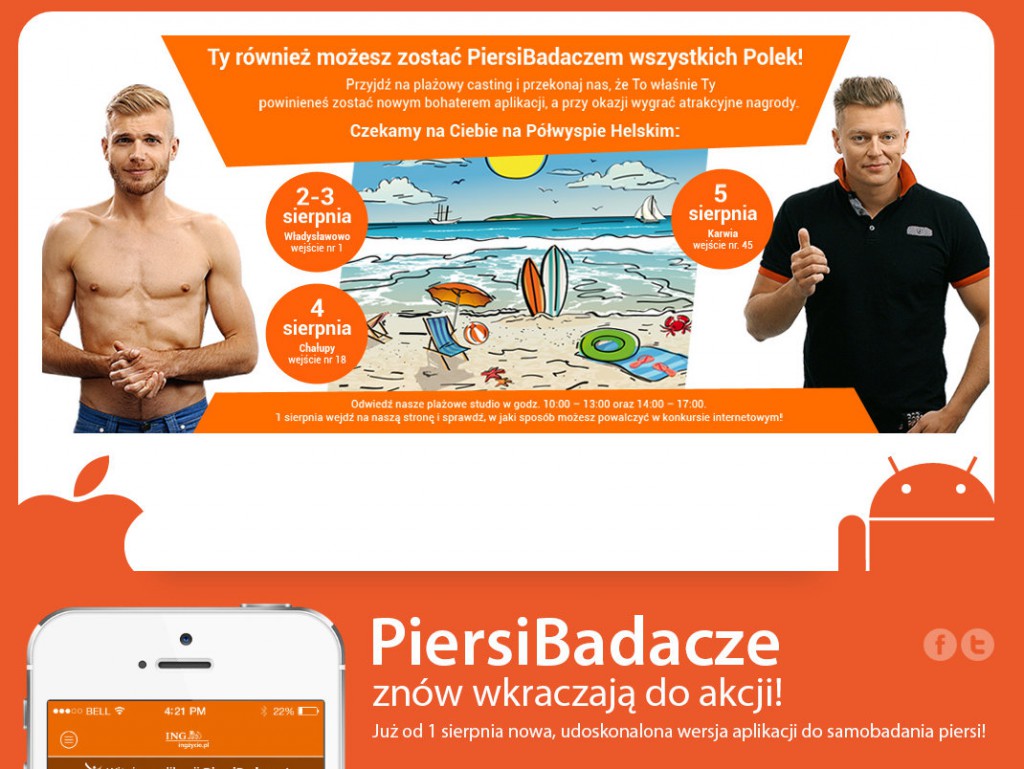 Duża popularność aplikacji PiersiBadacze sprawiła, że organizatorzy kampanii, we współpracy z ING Życie, postanowili stworzyć jej nowszą, jeszcze bardziej użyteczną wersję, oraz poszerzyć grono przystojnych „instruktorów” samobadania. Stąd konkurs-casting na nowych PiersiBadaczy, którzy zostaną włączeni do aplikacji już jesienią.