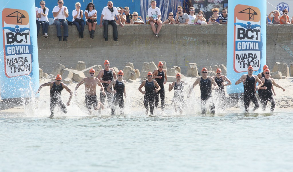 Organizowane już po raz czwarty zawody w tym roku po raz pierwszy odbyły się na dłuższej, liczącej 20,5 km trasie. Tym samym osiągnięte przez Annę Olasz i Krzysztofa Pielowskiego czasy należy uznać za rekordy nowej trasy. W ubiegłym roku, na krótszym o kilometr, liczącym 19,5 km dystansie Alexander Meyer z USA uzyskał czas 3 godziny, 53 minuty i 32 sekundy, a pierwsza w kategorii pań Christine Jennings z USA przypłynęła po 4 godzinach, 13 minutach i 57 sekundach. Dekoracja zwycięzców Maratonu Hel-Gdynia BCT Gdynia Marathon 2014 oraz wręczenie nagród odbędzie się w niedzielę o 15.45 w Miasteczku Maratonowym usytuowanym w Gdyni przy Bulwarze Nadmorskim. Wcześniej w niedzielę odbędą się Wyścigi OPEN oraz sztafety, które zostaną rozegrane między 12:00 a 15:30. 150 zawodników oraz amatorów pływania na wodach otwartych, zmierzy się w dwóch seriach z dystansem 2950 m oraz w wyścigu sztafetowym 4 x 200 m. Trasa wyścigu przebiegać będzie wzdłuż plaży w Gdyni.