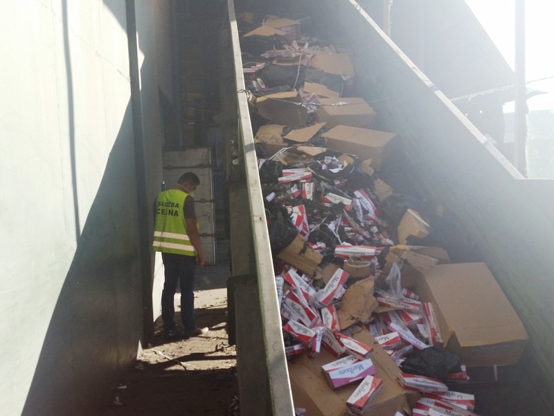 Zniszczone papierosy były warte ponad 14 milionów zł. Zostały zmielone w specjalnej maszynie, a następnie wymieszane z odpadami ropopochodnymi i spalone.