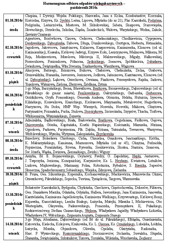 Wydział Polityki Gospodarczej, Mieszkaniowej i Ochrony Środowiska Urzędu Miasta Rumi informuje, że w październiku 2014 roku odbędą się jesienne wystawki, czyli zbiórka odpadów wielkogabarytowych.