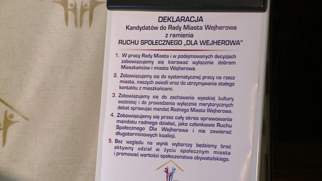 Ruch Społeczny "Dla Wejherowa" to inicjatywa obywatelska mieszkańców. W skład ruchu wchodzą bezpartyjni wejherowianie, którzy zapowiadają aktywne działanie na rzecz swojej miejscowości. Działacze przedstawili swoje postulaty we wtorek (28.10) podczas spotkania w jednej z wejherowskich kawiarni, tym samym rozpoczynając kampanię wyborczą.