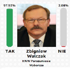 Kandydat na wójta gminy Gniewino jest jeden. 97.92% głosujących wskazało, że Zbigniew Walczak będzie dobrym gospodarzem przez kolejne cztery lata.