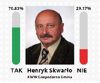 W gminie Wejherowo kandydat na wójta jest tylko jeden, jest nim obecny włodarz, Henryk Skwarło. W plebiscycie 70,83% oddających swój głos opowiedziało się za pozostaniem tego polityka na dotychczasowym stanowisku.