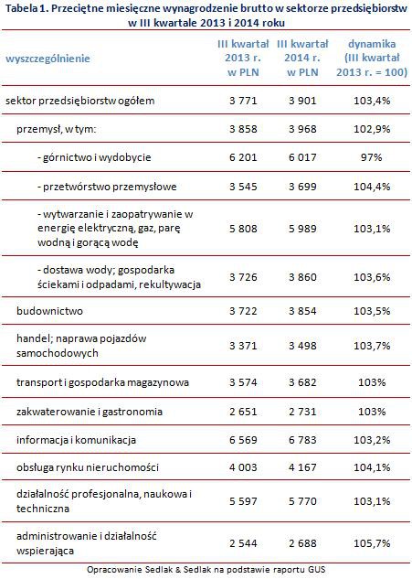Tabela 1. Przeciętne miesięczne wynagrodzenie brutto w sektorze przedsiębiorstw w III kwartale 2013 i 2014 roku
