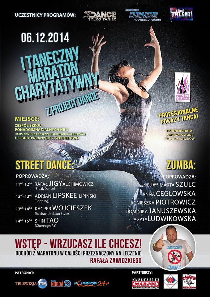 Mecz, koncert i wystawa – to już było. Teraz czas na taniec. Wszystko dla Rafała Zawidzkiego, który choruje na raka. W najbliższą sobotę odbędzie się I Taneczny Maraton Charytatywny z Project Dance. Wstęp – wrzucasz ile chcesz.