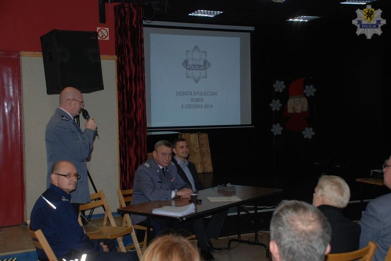 Debata została przeprowadzona pod hasłem „Walka z Przestępczością oraz Zapewnienie Spokoju i Porządku Publicznego Na Terenie Miasta Rumia”. W trakcie tego spotkania poruszona została tematyka przestępczości na terenie miasta oraz omówienie działań służb interwencyjnych na rzecz zapewnienia ładu i porządku publicznego. W debacie udział wzięli: Komendant Wojewódzki Policji nadinsp. Wojciech Sobczak, Starosta Powiatu Wejherowskiego Gabriela Lisius, Burmistrz Miasta Rumia Michał Pasieczny, Komendant Powiatowy Policji w Wejherowie insp. Krzysztof Lawer, Komendant Komisariatu Policji w Rumi mł. insp. Ireneusz Szmurło, Komendant Straży Miejskiej w Rumi Roman Świrski, przedstawiciele MOPS-u oraz mieszkańcy miasta.