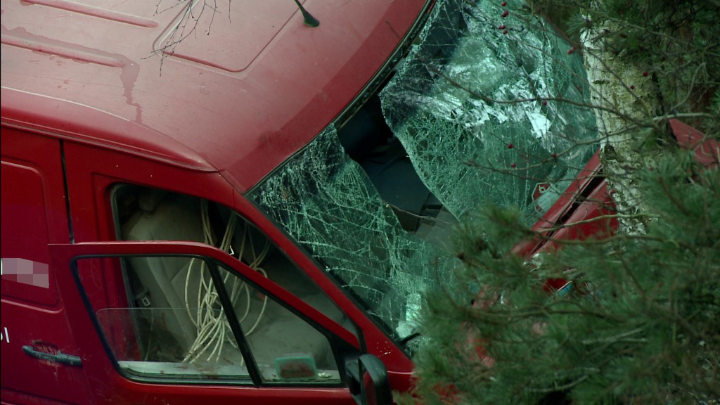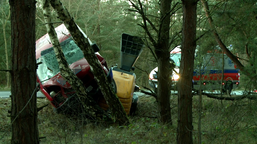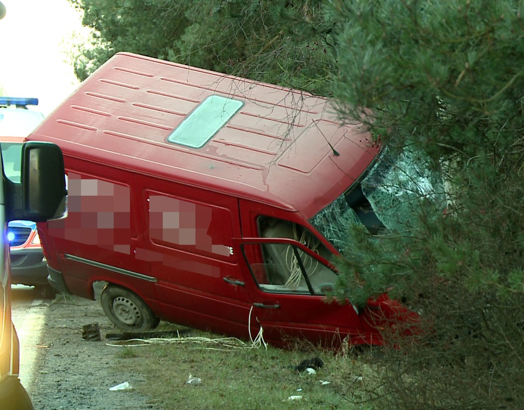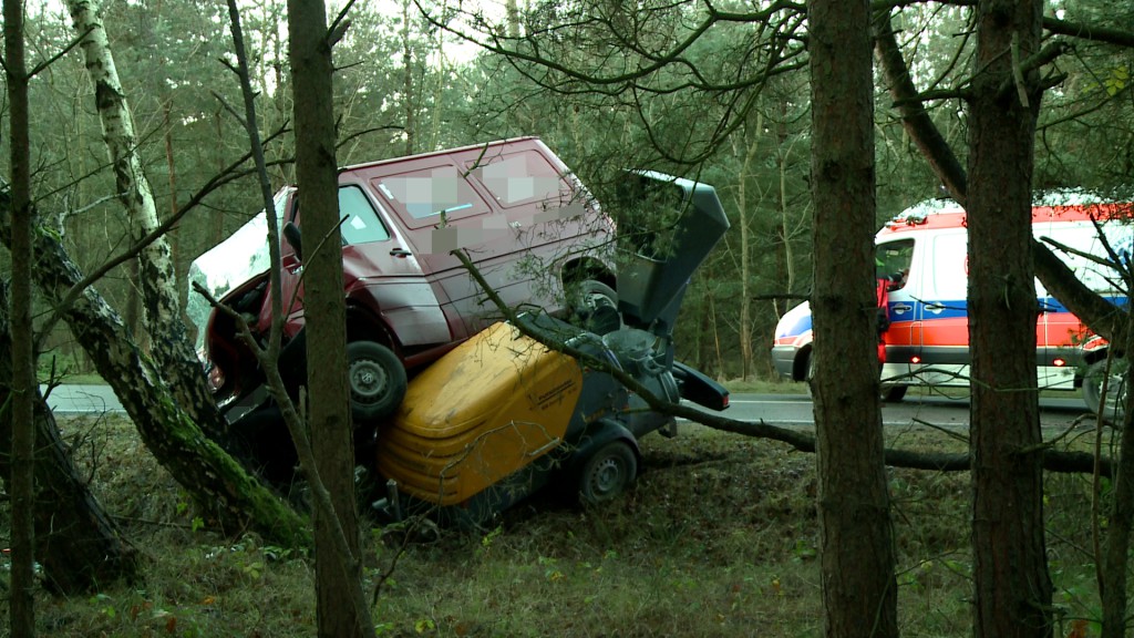 - Samochód dostawczy wiozący z tyłu za sobą agregat, najprawdopodobniej wpadł w poślizg i uderzył w drzewo – informuje dowódca Jednostki Ratowniczo-Gaśniczej Państwowej Straży Pożarnej w Pucku, kpt. Artur Krzeszowski.
