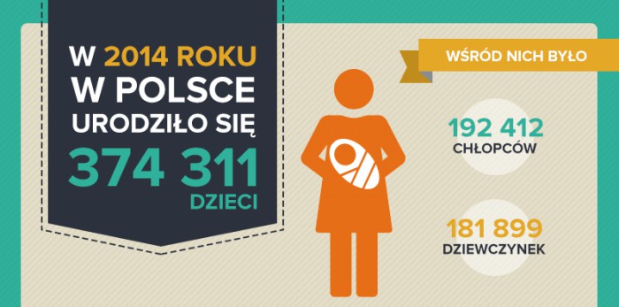 Łącznie w całej Polsce w 2014 roku urodziło się 374 311 dzieci, w tym więcej chłopców (192 412) niż dziewczynek (181 899). Największa przewaga narodzin chłopców nad dziewczynkami wystąpiła na terenie województw: mazowieckiego, wielkopolskiego i małopolskiego. Najmniejszą różnicę między liczbą narodzin chłopców a liczbą dziewczynek odnotowano w województwach: świętokrzyskim, opolskim i lubuskim.