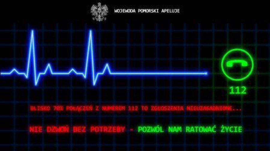 Około 70 procent wszystkich połączeń na numer alarmowy 112 w 2014 roku było bezzasadnych. W tej sprawie apeluje Wojewoda Pomorski, przypominając, że numer alarmowy służy wyłącznie do powiadamiania w nagłych sytuacjach zagrożenia życia, zdrowia lub mienia.