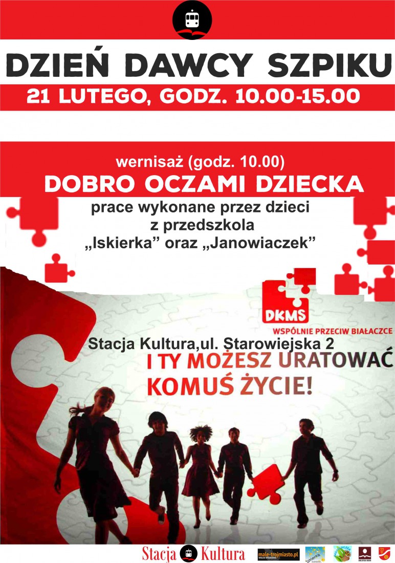 W sobotę 21 lutego w Stacji Kultura w Rumi odbędzie się Dzień Dawcy Szpiku Fundacji DKMS Polska połączony z wernisażem i wystawą prac dzieci z przedszkola “Iskierka” oraz “Janowiaczek” w Rumi. Tego dnia każdy chętny będzie mógł podjać ważną życiową decyzję I zarejestrować się do Bazy Dawców Szpiku.